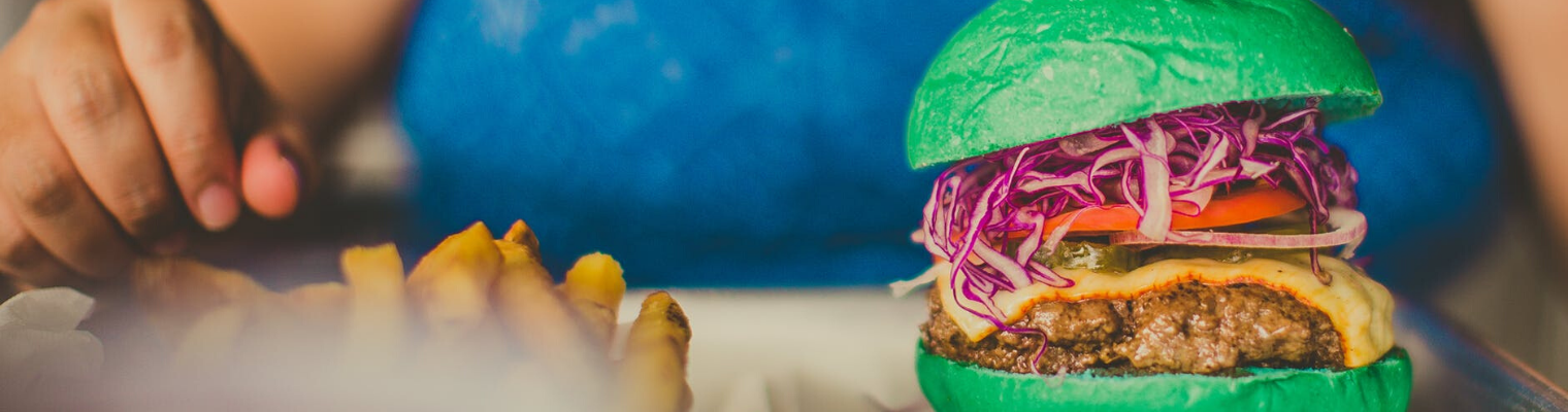 Reiteró, luciendo muy sabio , mordiendo la segunda hamburguesa que goteaba con salsas de color arcoíris mientras me preguntaba, francamente curioso, con qué huevos se hizo una mayonesa morada .
